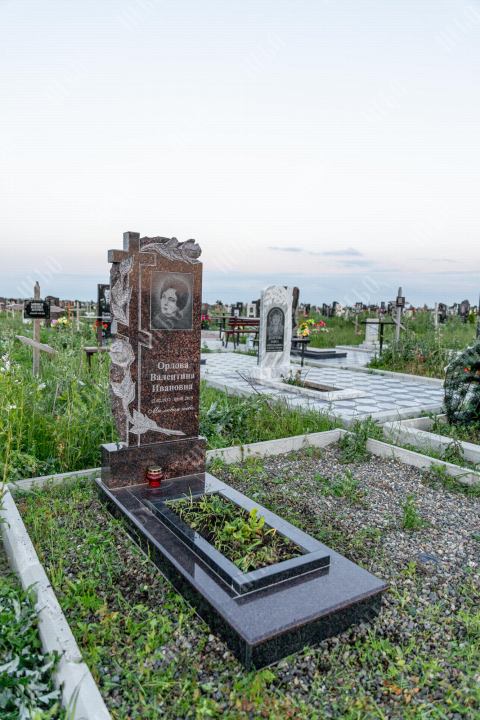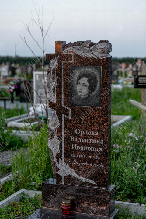 Памятник фрезерный с крестом, открытым надгробием и фигурной стелой. Использование фрезеровки в изготовлении ритуальных изделий гарантирует высочайшую точность исполнения запланированного дизайна. С помощью этой технологии в камне высекаются углубления по заданным макетам, придавая памятнику объем, позволяя комбинировать различные элементы и создавать сложные фигуры. На фрезерованном памятнике удачно контрастируют цвета и в солнечную погоду играют тени от объемных деталей. Открытое надгробие позволит в дальнейшем использовать пространство на его поверхности для высадки цветов или других растений. Размеры стелы и надгробия соответствуют заданным нормам при имеющейся нагрузке и исключают деформации изделия со временем.