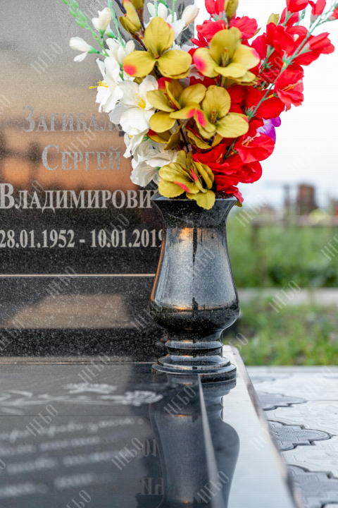 Для изготовления памятника использован гранит карельский габбро-диабаз. Это горная порода, отличающаяся прочностью и повышенной износостойкостью. Карельский габбро-диабаз устойчив к влаге и перепадам температур. Его плотность выше, чем у мрамора, поэтому именно его использовали при воздвижении вековых колонн исторических зданий. Гранитный памятник габбро-диабаз не требует особого ухода, обладает насыщенным черным цветом, что делает внешний вид памятника благородным и лаконичным.